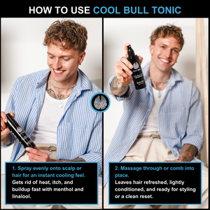 Spray lightly, focus on the scalp, and massage it in. You can add more if needed, but over-applying is unnecessary. Cool Bull Tonic is designed to refresh and condition without buildup.