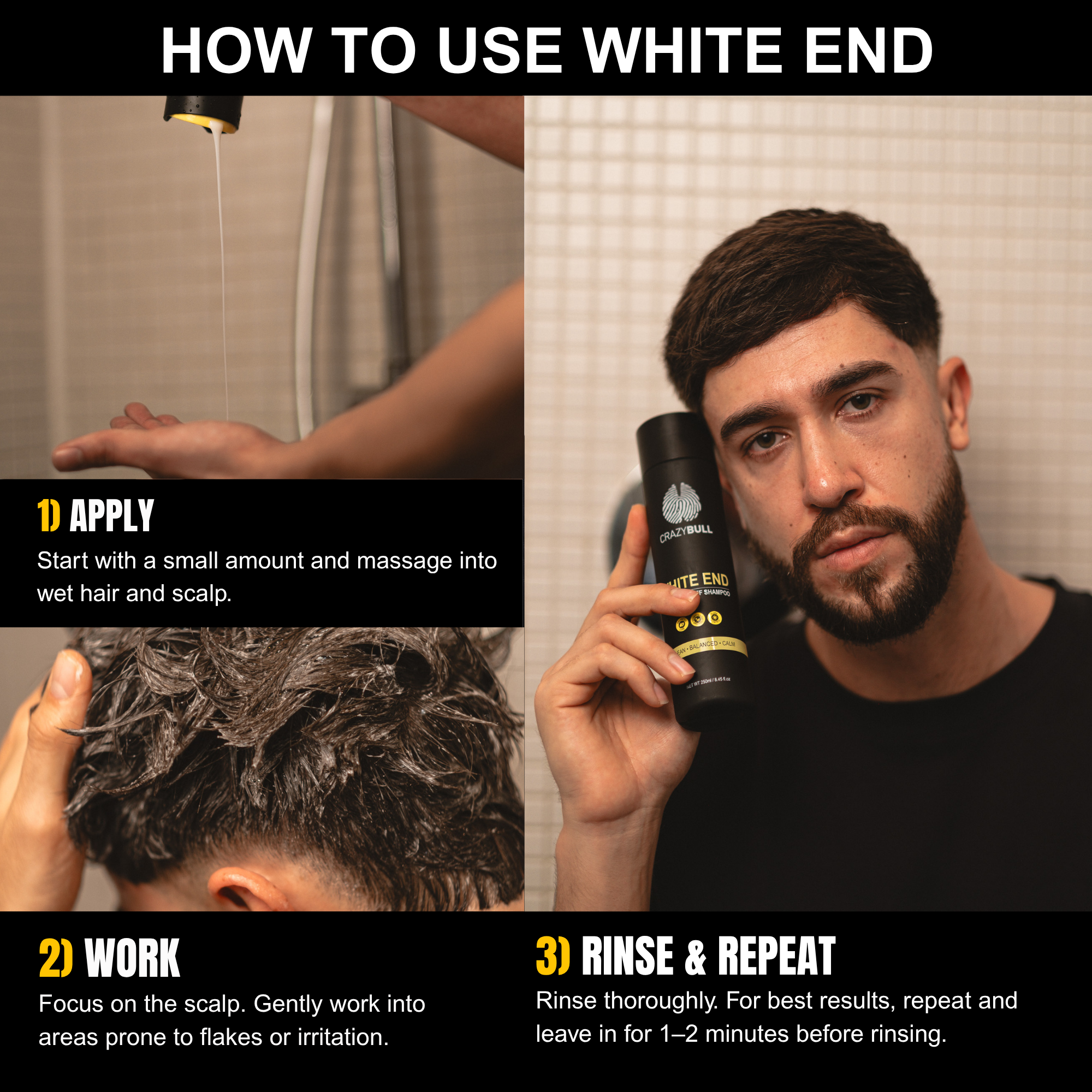 White End is a clean, modern anti-dandruff shampoo designed to tackle flakes at the source while keeping your hair and scalp balanced, calm, and healthy.
