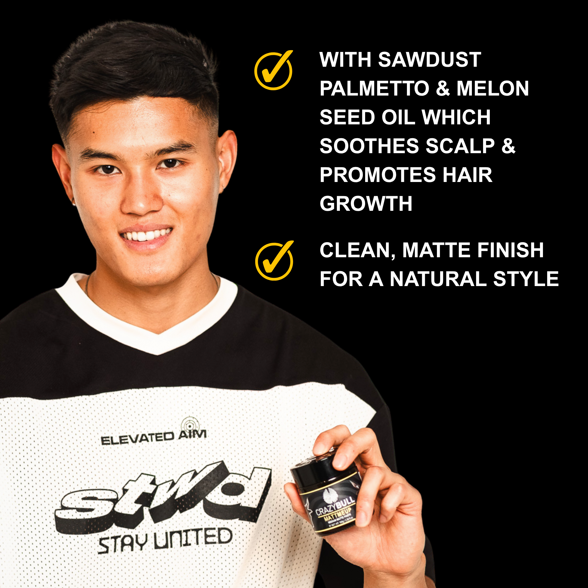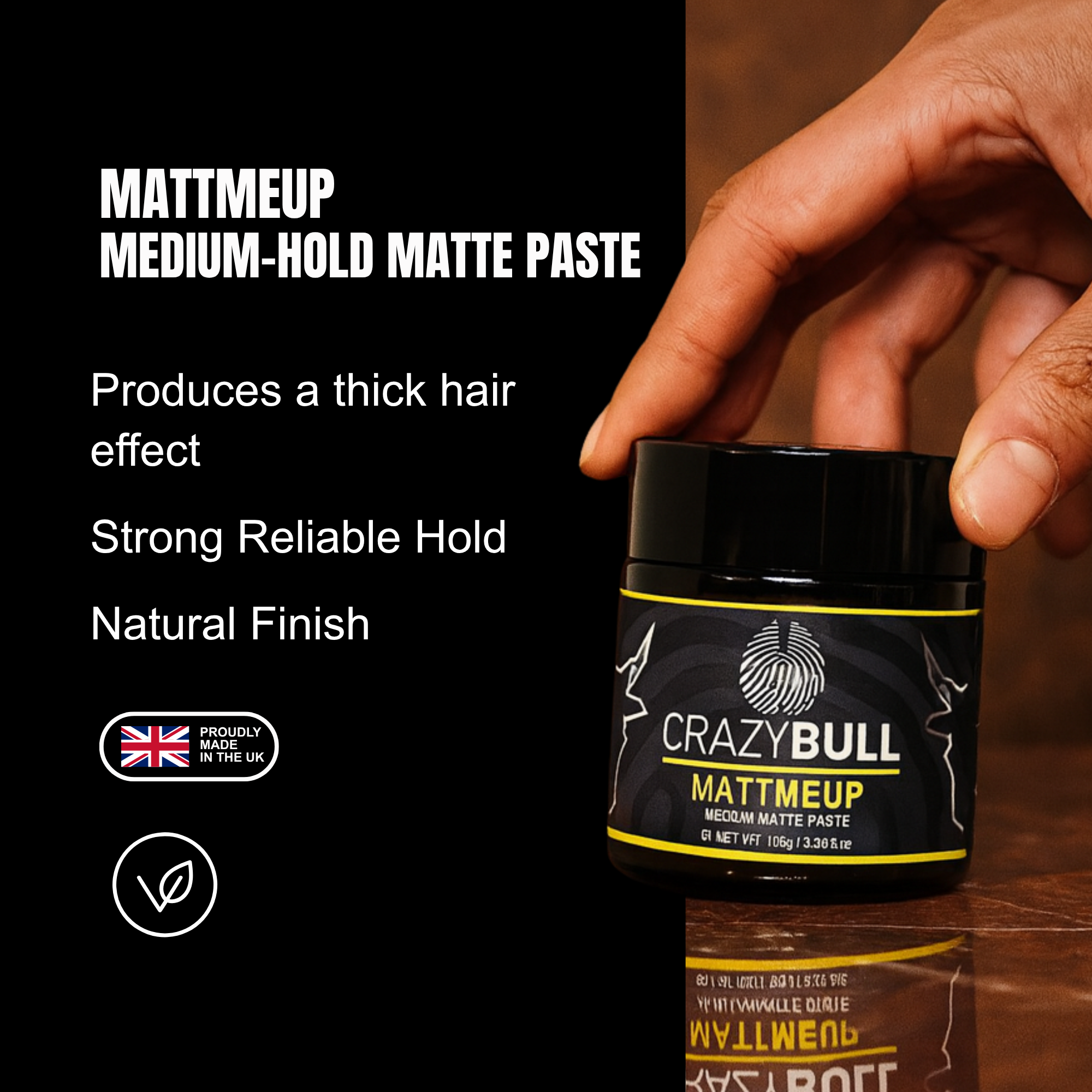 Crazy Bull’s most popular MattMeUp is designed to shape and control your style with ease. The lightweight formula delivers a clean matte finish and reliable all-day hold, keeping hair looking natural and well-structured.