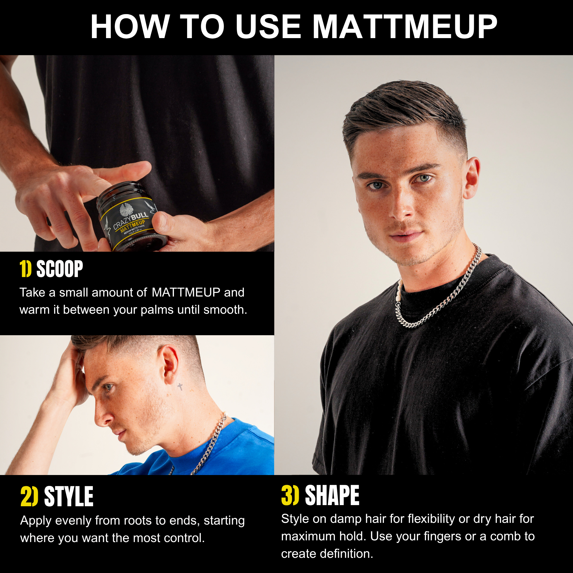 MattMeUp works best when your hair is clean. Dry hair gives a stronger hold. Damp hair gives a softer, more natural finish.