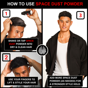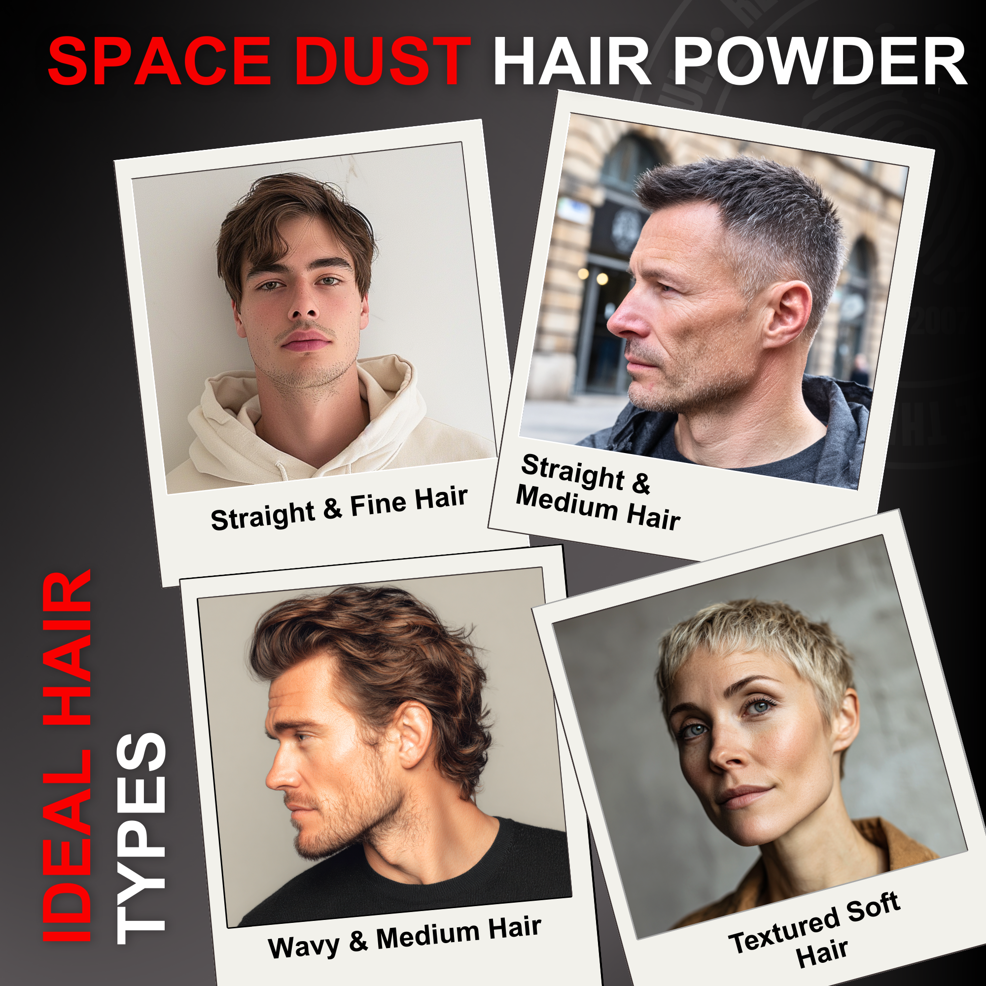 Unlike other powders, Space Dust's water based properties can be used on all hair types. Space Dust is ideal for hair types that benefit from volume, lift, and texture.